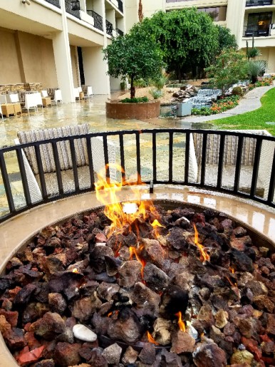 비가 와서 야외 난로가에 사람들이 없네요!