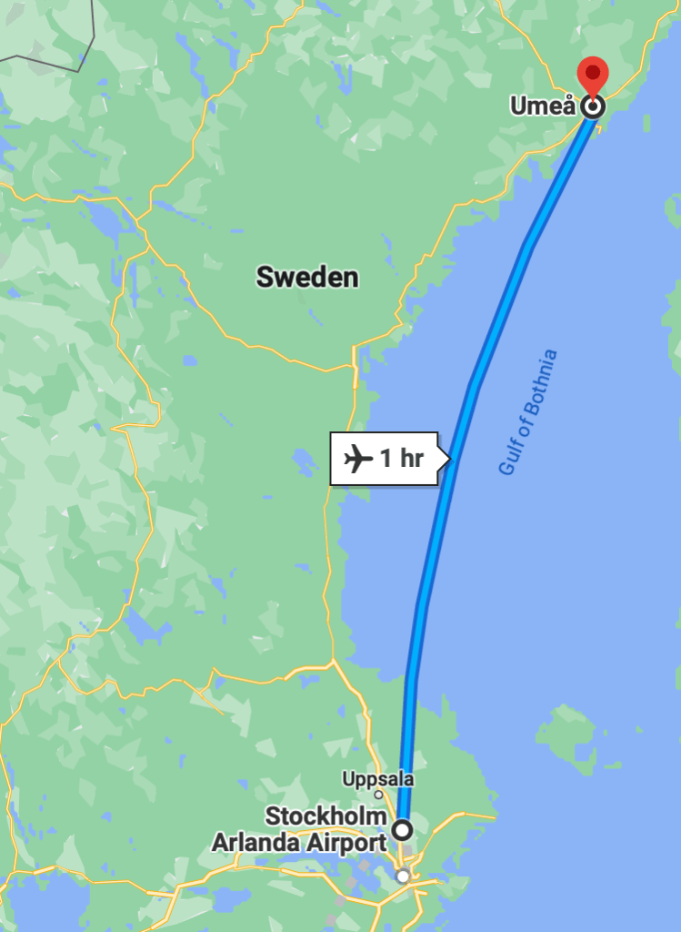 스톡홀름에서 북쪽으로 비행기타고 1시간 거리의 인구 10만여명의 대학도시 Umea.
