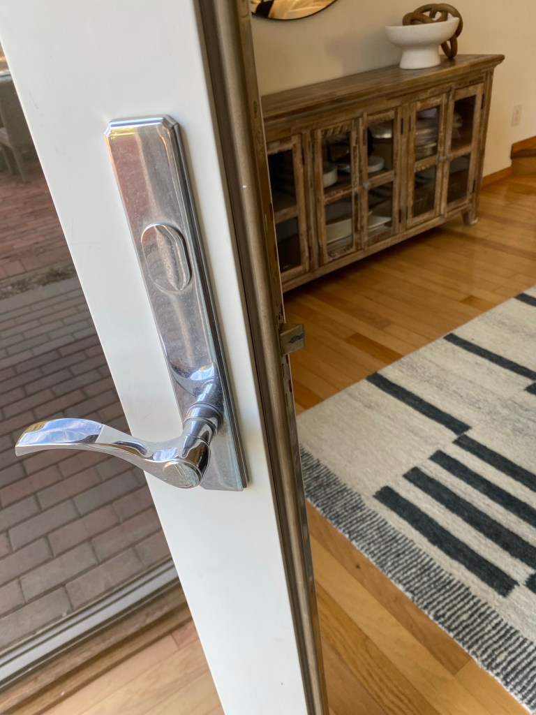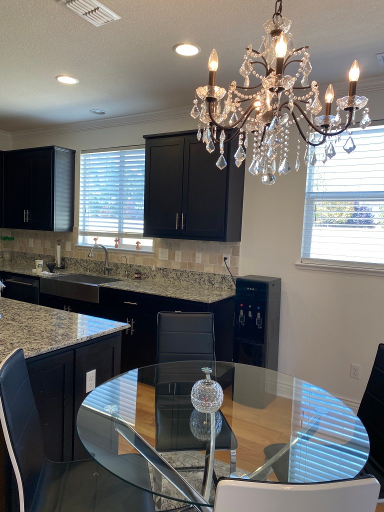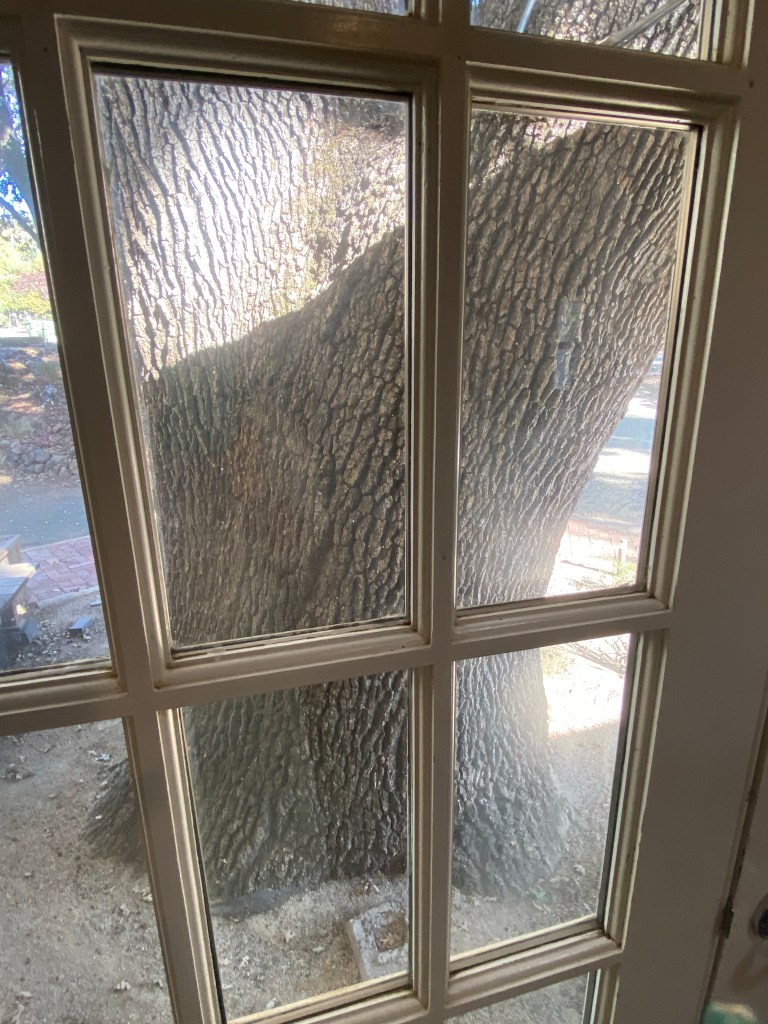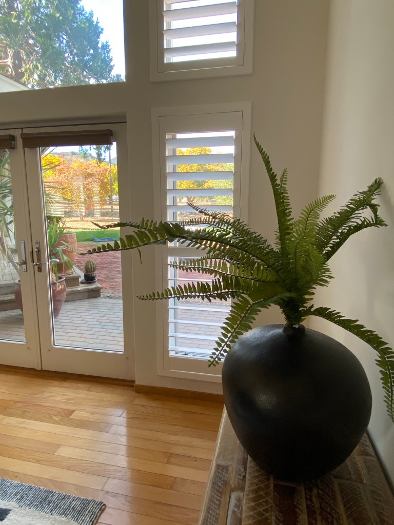 문 열자마자 넓게 펼쳐진 다이닝 테이블과 뒷마당 조경
