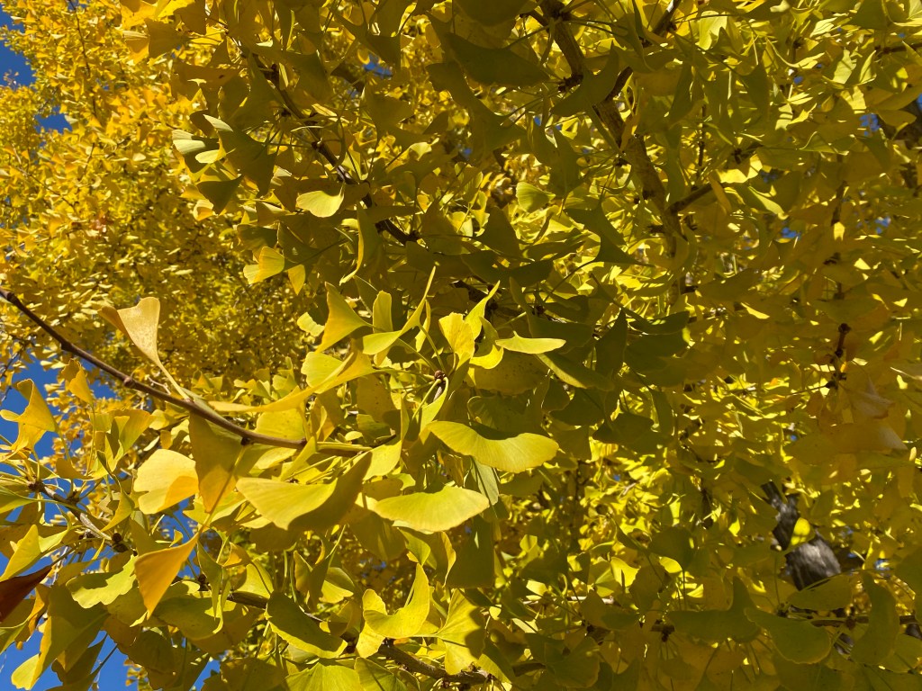 노랗디 노란 부채잎의 은행나무는