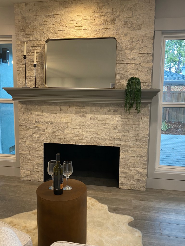 벽난로쪽 인테리어 질감과 색도 전체적으로