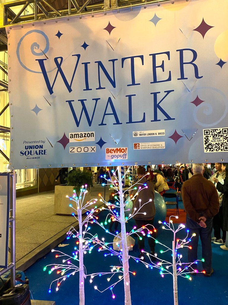 샌프란시스코 유니온 스퀘어 트리 앞에서 …