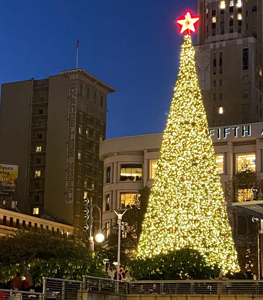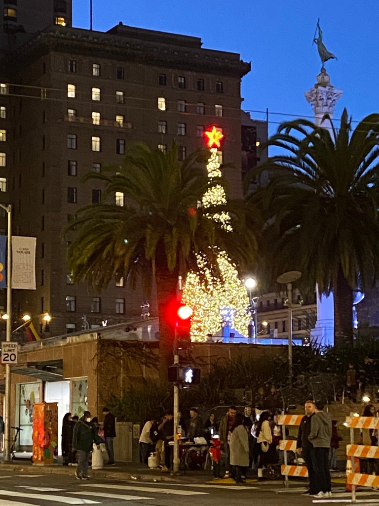 숙소 앞의 유니온 광장의 트리 앞에